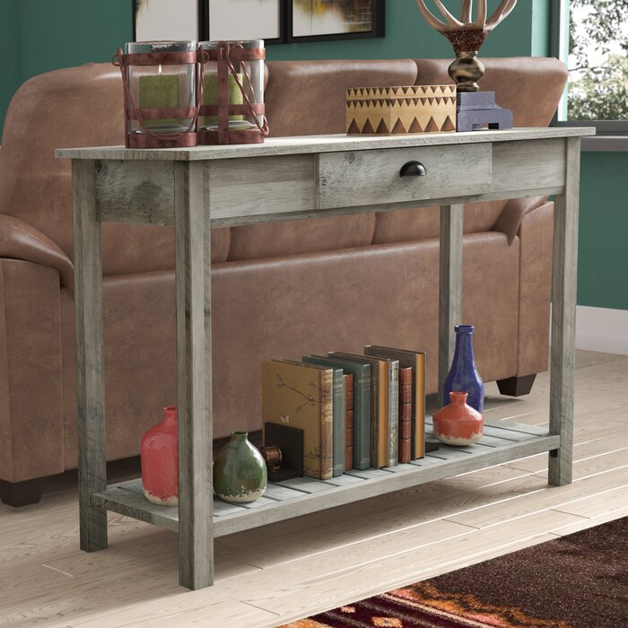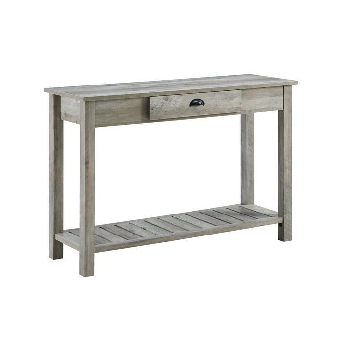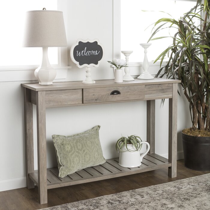 Bienvenido, una pizca de inspiración antigua en el conjunto de su entrada o en el diseño de la sala de estar con esta consola de líneas limpias. Hecho a mano con madera manufacturada con laminado, este diseño discreto luce un acabado neutro con detalles desgastados para una apariencia espaciosa y desgastada. El nivel superior e inferior abierto proporciona una plataforma para fotos familiares enmarcadas, plantas en macetas y acentos ingeniosos que desea mostrar, mientras que un cajón ofrece espacio de almacenamiento fuera de la vista para cualquier detalle.