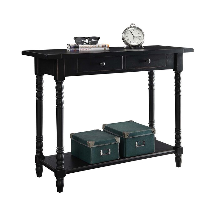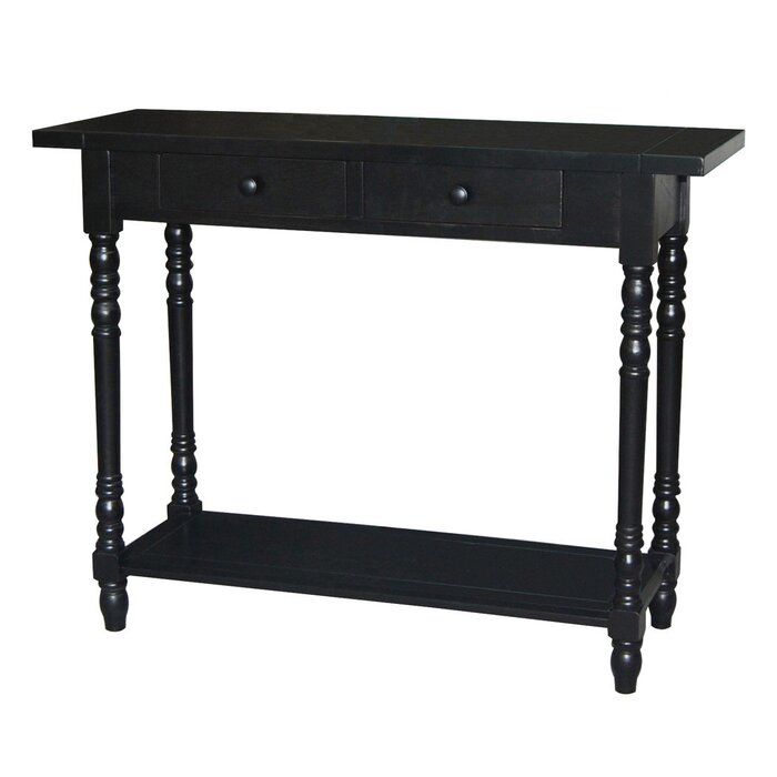 Una mesa de consola es un acento versátil que funciona en muchos lugares de un hogar: desde una entrada hasta una sala de estar desordenada y más allá, la mesa de consola ofrece espacio para exhibir piezas de decoración y al mismo tiempo despeja el desorden. Tome este, por ejemplo: hecho de madera, luce detalles torneados en las cuatro patas, mientras que las perillas de metal ofrecen un toque elegante. Ofrece un estante inferior para exhibir algunos artículos, mientras que dos cajones ofrecen espacio para guardar las cosas que prefieres guardar.