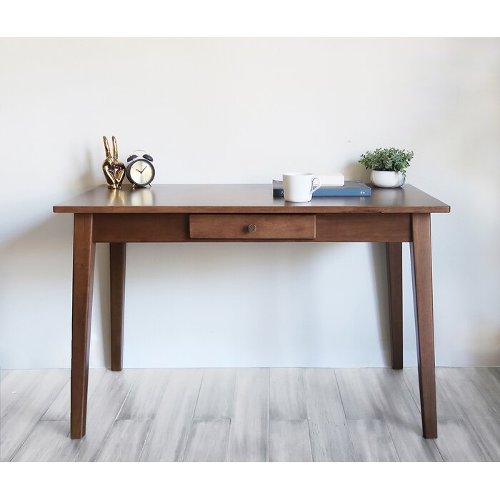 Inspirado en los diseños de mediados de siglo, este escritorio clásico de líneas limpias es un elemento sólido para cualquier estudio. El escritorio está hecho de madera maciza de acacia con un elegante acabado marrón que complementa la mayoría de las paletas de colores. Las opciones de uno o dos cajones le ofrecen la elección del aspecto y la cantidad de almacenamiento que desee, mientras que el escritorio expansivo proporciona un gran espacio de trabajo.