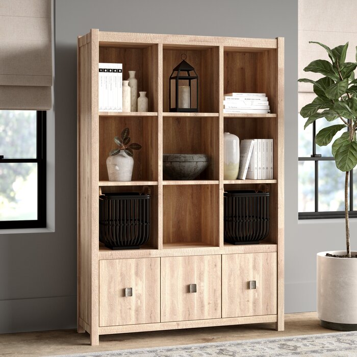 Arregle el desorden en la entrada u organice la oficina con un estilo discreto con esta estantería de unidad de cubo de líneas limpias. Nueve cubículos abiertos brindan un lugar para mostrar fotos enmarcadas, libros o una pila de suministros, mientras que tres gabinetes de una puerta abajo ofrecen almacenamiento oculto para las probabilidades y los extremos que preferiría guardar.