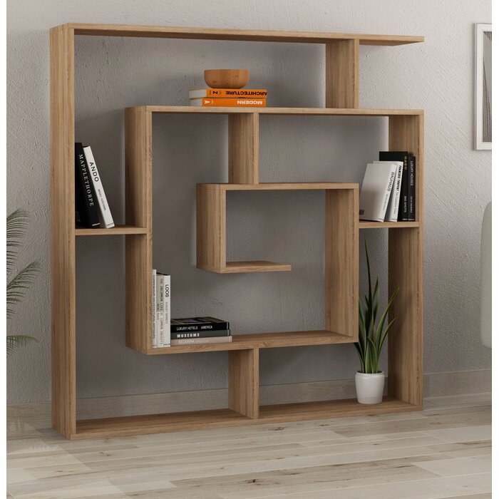 Muestre fotos enmarcadas, plantas en macetas y acentos artísticos con un estilo llamativo con esta estantería. Con una llamativa silueta geométrica, este diseño moderno tiene ocho niveles de diferentes alturas y anchos que brindan un lugar para posesiones preciadas de todos los tamaños. Además, hay espacio en la parte superior para aún más decoración. Hecho a mano de madera manufacturada con un acabado sólido.