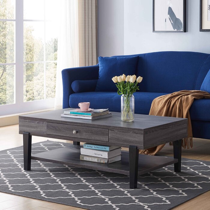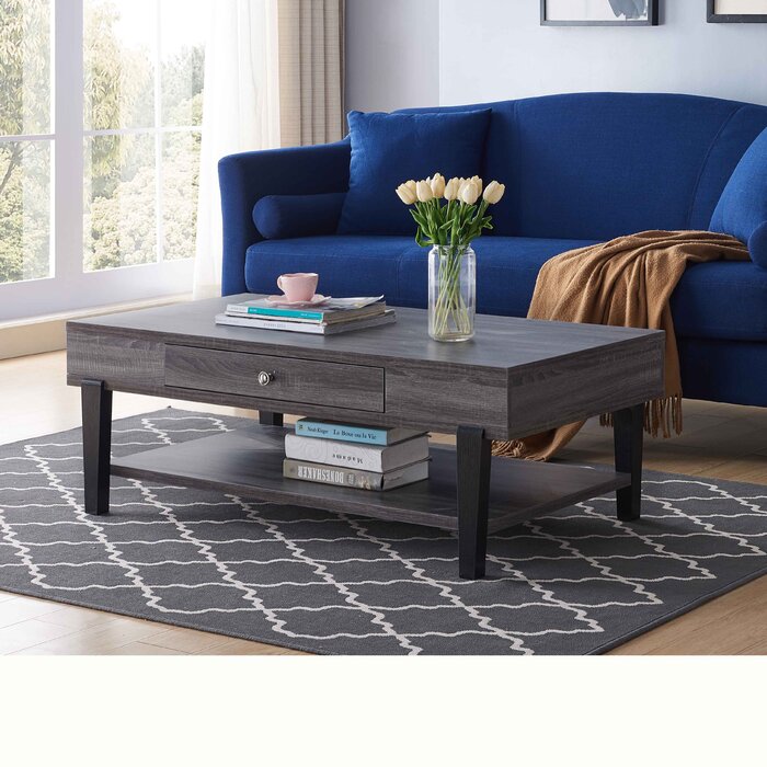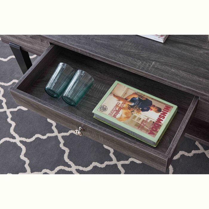 Con una pantalla de dos niveles con una mesa ancha y un compartimento inferior ancho, esta mesa de café le da a su espacio vital un aspecto moderno. Un cajón se integra perfectamente con el tablero de la mesa, lo que le brinda un compartimento de almacenamiento adicional para cualquier adorno que necesite guardar.