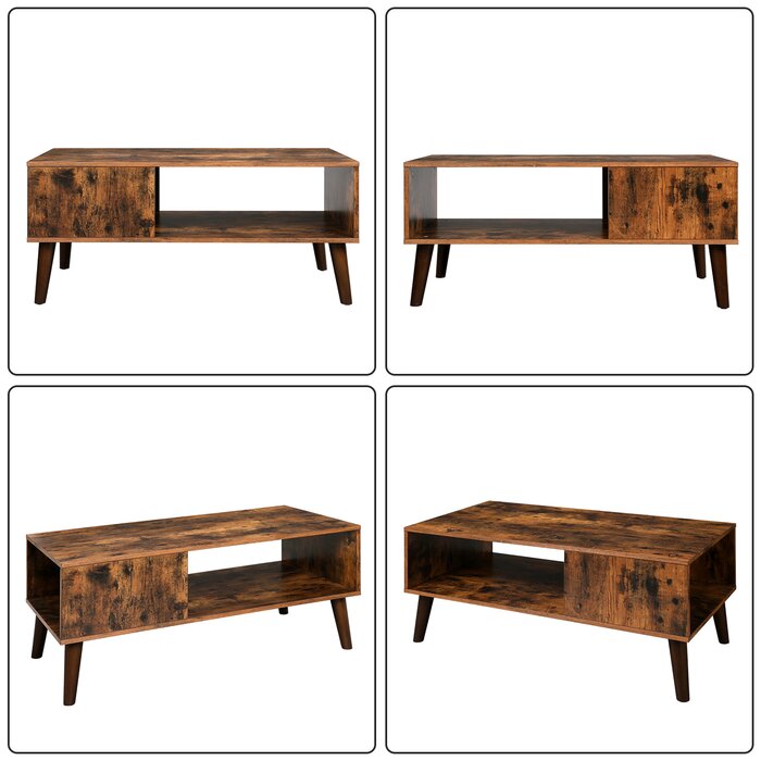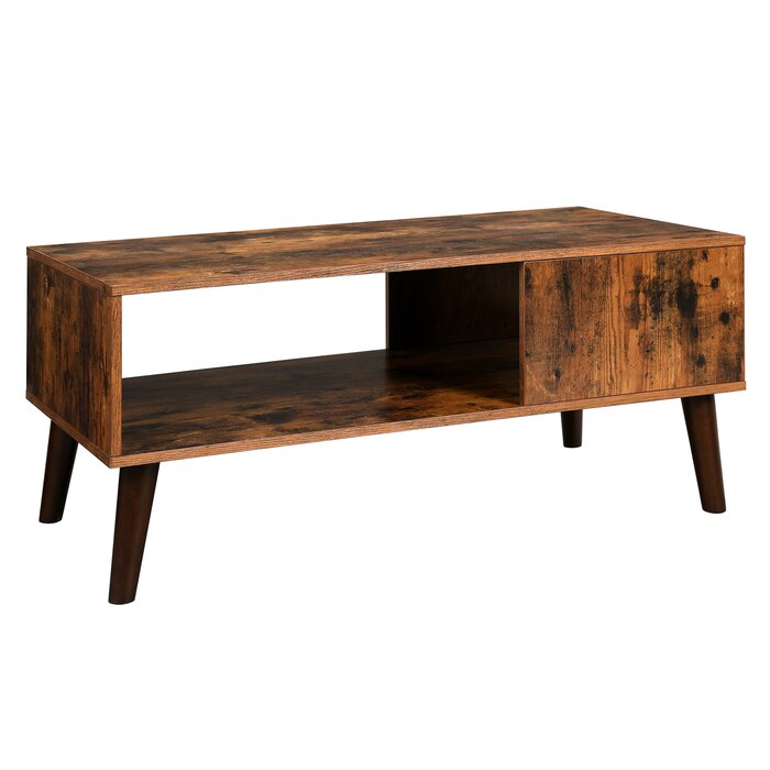 Esta mesa de centro retro puede combinar con una variedad de estilos y traer la estética inspirada de mediados de siglo a su sala de estar. Está hecho de madera de ingeniería y cuenta con cuatro patas cónicas y extendidas con una parte superior con un forro limpio. Esta mesa está disponible en un acabado natural que deja pasar las imperfecciones de la madera. La mesa cuenta con un estante abierto y un compartimento de extremo abierto donde puede guardar libros, revistas y controles remotos. Mide 39.4 “de largo, lo que significa que puede caber en salas de estar más pequeñas.