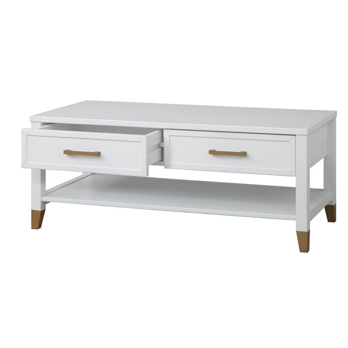 La mesa de centro ria tiene un aspecto moderno de mediados de siglo que funciona en cualquier interior contemporáneo. Combinando un diseño atractivo con un espacio de almacenamiento conveniente, esta mesa de centro es imprescindible para la sala de estar. Dos cajones y un gran estante abierto debajo le brindan un amplio espacio para almacenamiento y exhibición. Fabricado de forma duradera con MDF y patas de madera maciza de pino.