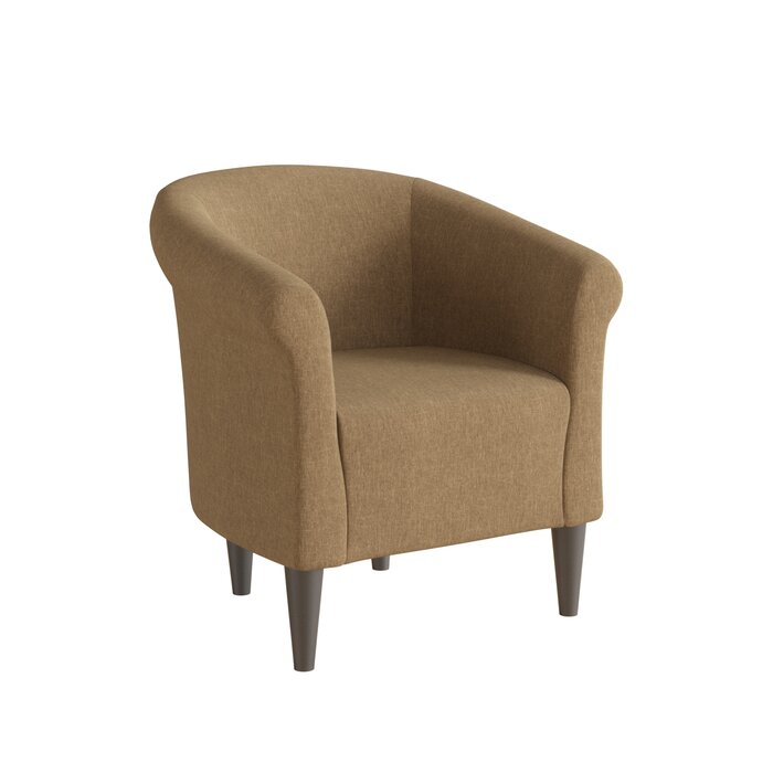 Ya sea que necesite un lugar para acurrucarse con un buen libro o un lugar para colocar la ropa para el día siguiente, esta silla de barril aerodinámica es una adición versátil a su espacio. Fundada sobre patas de plástico cónicas con un acabado negro, esta pieza económica está fabricada con orgullo con un marco de madera fabricada que soporta hasta 250 libras. El acolchado de espuma y la tapicería de tela de mezcla de poliéster y algodón envuelven este diseño para una apariencia accesible.
