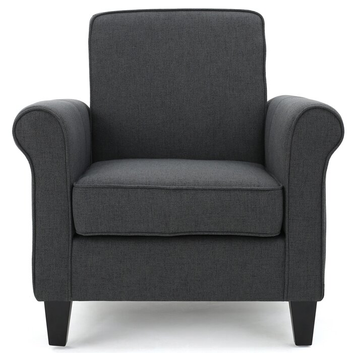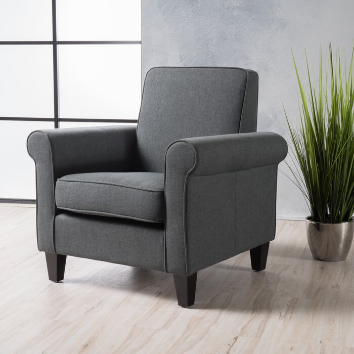 Agregue un toque de estilo tradicional, así como un asiento acogedor, a cualquier espacio de su hogar con este elegante sillón. La elección perfecta para espacios tradicionales, esta hermosa pieza muestra una silueta simple que combina bien con una variedad de muebles. El diseño del club con brazos enrollados le da a esta silla su estilo clásico, mientras que la tapicería de tonos sólidos neutros le permite integrarse en cualquier entorno. Intente agregar un par de estos sillones a un rincón sin usar de su sala de estar para crear un rincón de lectura acogedor que sea perfecto para acurrucarse con su última lectura del club de lectura o charlar con un amigo. Para mejorar la apariencia, levante una mesa auxiliar de estantería negra brillante para colocar una taza de té o revistas brillantes, luego agregue una lámpara de pie plateada simple para proyectar un brillo cálido sobre su espacio.