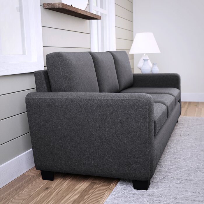 Diseñado con líneas limpias y rectas para llamar la atención y elegantes patas de madera, este sofá tiene un toque contemporáneo con suficiente versatilidad para completar cualquier sala de estar. Sencillo riel Los brazos permiten que este sofá se adapte sin esfuerzo a espacios y esquinas compactos para maximizar el espacio en su sala de estar. Enviado en una caja directamente a la puerta de su casa con un montaje súper fácil y acabados limpios, este sofá es el epítome de una clase conveniente.