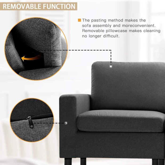 Sofá sofá firme y cómodo: funda de cojín duradera con sensación de lana y espuma de alta resistencia, el marco de madera dura hace que el asiento sea más cómodo y firme. El sofá proporciona una gran comodidad y apoyo para su cuerpo mientras mantiene la forma de los cojines del asiento.